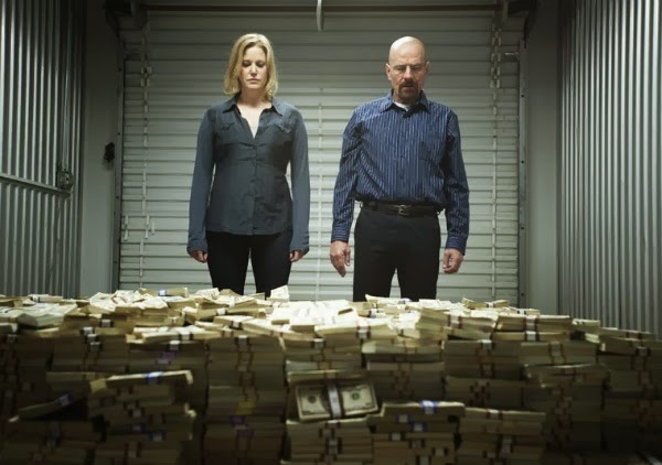 On Huffington Post, Maureen Ryan wrote a long, tedious column on the “Oxymandias” episode, breaking it down moment by moment like a pretentious English Literature professor at a third rate college. Helping us to “understand” it. Finding metaphors within metaphors, symbols within symbols. Basically rewriting it for us with her own private spin. As if we needed it explained, as if it’s not a piece of entertainment that either works (oh boy, did it) or doesn’t. It was one of the most self-indulgent, solipsistic pieces of crap I’ve ever read online. And she did it with no wit or sense of humor at all. But, the punchline was that she had somehow completely missed the point of the phone call scene towards the end of the episode. That’s when Walt spews vitriol at Skyler over the phone…then we realize, as Skyler does, that he is saying all of it for the benefit of the eavesdropping cops – in order to absolve his wife on record and keep her out of jail. There are multiple emotional layers to it, but there is no doubt Walt is putting on a performance. The writer of the episode verifies this herself in an interview. But Miss Professor Critic is so traumatized by his words that she doesn’t “get it” and calls it the ultimate show of Walt’s evil. All the subtle nuance and shades of grey (Walt’s tears, Skyler says “I’m sorry” and means it) that the writers have so painstakingly put into every episode of BB for the last six years totally eludes her.